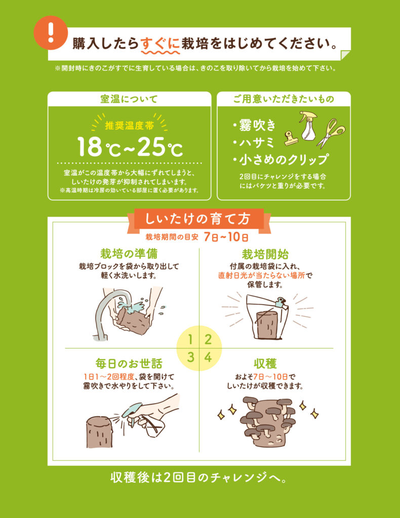 品種や栽培環境によって栽培期間、収穫量は左右されますが、早いもので1週間後から収穫できます(詳細は下のパンフレット)。