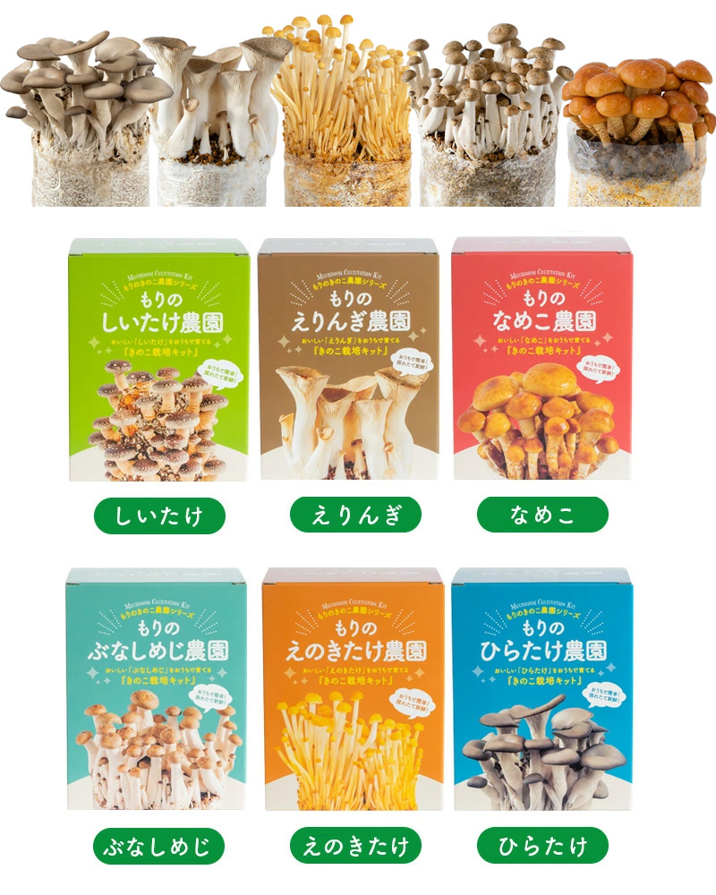 1日2回霧吹きで水をあげるだけで簡単にきのこができる、『もりのきのこ農園』シリーズ。