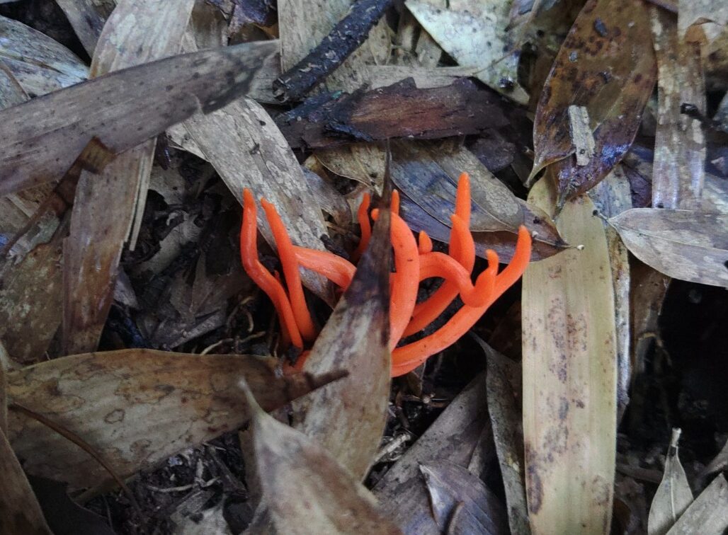 本物なのかな…と思い調べてみると、カエンタケ以外にベニナギナタタケとベニセンコウタケが候補に挙がりました。