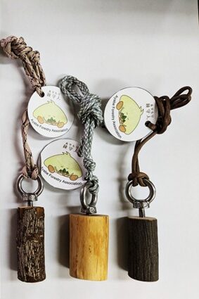 組合でも木や森に関心を持ってもらえるよう、森林林業に関する講師や木工体験など『木育』活動を行っており、その一環として昨年から、あやべ産業まつりの森林組合ブースでバードコールやカスタネット作りなどの木工体験をしています。